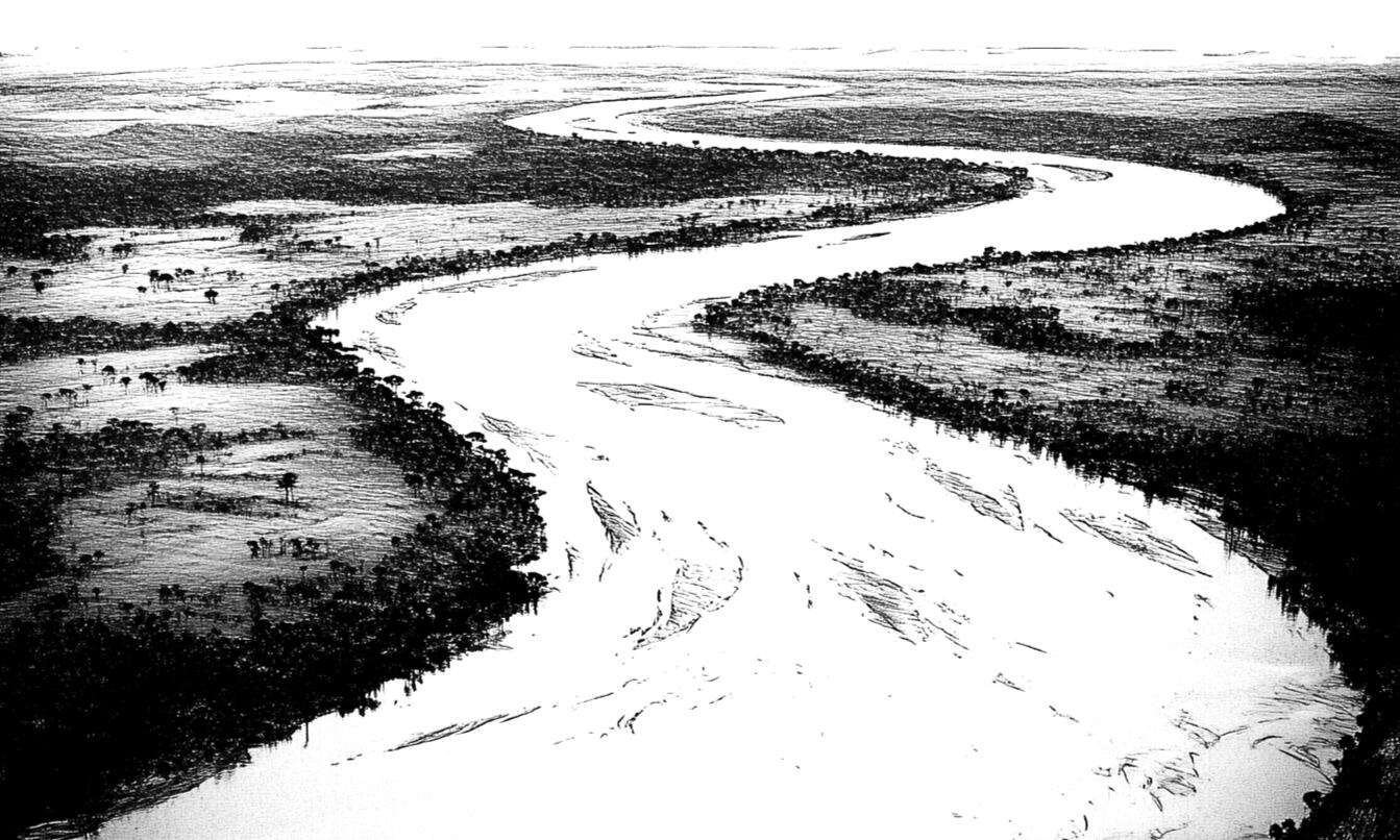 Embarked on a quest, [eastward].Crossing the sacred river [Oslira],