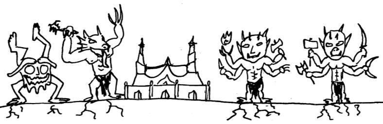 21. Gulbet-Mara, Agbet-Mara, Larnat-Mara, Bodnet-Mara: These are examples of the bestial mother goddesses. The true list is much larger, encompassing almost all beasts, many of which are now long gone. The ones listed here are the mother goddesses of cows, monkeys, moths, and turtles, respectively. It is unclear whether these are distinct aspects of Mara, or whether Mara is being used here as a title and each goddess is separate. Traditions seemed to vary from tribe to tribe.