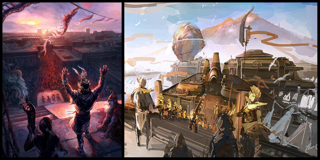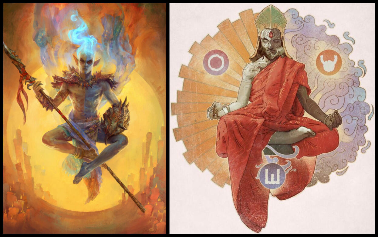 Enlightenment through sex? That sounds like the very antithesis of the other schools of mystical thought we have discussed. Another contradiction in an already endless stack, I suppose. Though I must admit, I am beginning to notice a pattern. It seems that, when elves pursue Mysticism, they often try to detach themselves from the mortal world, whereas humans seem to seek a fuller union with it. I bet you would argue that both are two in one, hmm? What, then, of the Men of the West, the Redguards and the Yokudans? They have their sword-saints. Is that also a mystical tradition?"The old Yokudans walked a path that put Mysticism in the grip of a calloused hand. Where my people sit on stones and watch the breath, they watched the blade."Their highest mystics were not monks in cells, but warrior orders, ascetics in lacquered armour. They lived with strict discipline. Little food, less comfort, endless practice. Not to flee the world, but to become so exact in body and mind that no space remained between them and their sword."They did not fear power. That is a key difference. A Psijic learns to let power pass through without grasping it. A Yokudan sword-saint lets it bloom fully, but chains it to duty and perfect control. When they spoke of becoming 'one with the blade,' it was not poetry. In rare cases, the sword was only the visible part of a much larger, invisible edge cutting through the world."Some of them learned strokes that could be made once only. World-shaping cuts that exhausted the pattern itself. You know the story: a mystic whose final strike broke Yokuda and drowned it. Your scholars argue about how literal that is. From a mystic view, it does not matter. The tale remembers what their path allowed."In Hammerfell today, much is lost or buried. The Redguards keep fragments: sword-singing in half-forgotten forms, duelling codes that are really spiritual exercises, old masters in the deep desert who still treat the blade as a scripture you read with your muscles. To really understand the mystics of Yoku, old, I quote one of their masters, Frandar Hunding: 'They sought to carve truth into themselves until nothing was left but the cut.'"Such power is truly dangerous. It can end worlds, and more besides. I am beginning to understand why so many Mystical traditions place such emphasis on restraint, on discipline, on the governance of the mind. Time and again, we see the same lesson: power invites corruption, even when it is pursued with good intentions.We have spoken of Men and Mer, but what of the beastfolk? Are, say, Khajiit capable of practising Mysticism as well?"Very much so. The moons do not shine on Elsweyr for nothing. The Khajiit were once mostly wanderers and shamans, talking to spirits at the cooking fire, trading stories with the ja-Kha'jay in their sleep. That older way still lives among the northern tribes. But everything changed with Rid-Thar-ri'Datta and the Riddle'Thar. He gave them a mystic spine to hang all those old dreams on."Their true mystics are the moondancer orders. Quiet monasteries tucked into canyons and jungle hills where cats move like water and speak very little. They meditate on the Two Moons Dance, breathing in rhythm with Masser and Secunda, letting their thoughts wax and wane with the sky until the self thins out. Instead of sitting still with that insight, they take it into the body. Their martial arts are a kind of moving prayer. Each strike, each step, is a way of tracing the curve of the ja-Kha’jay. The higher masters can do impossible things: split rock with a paw, stop a heart with a tap. The trick, and the burden, is that they bind themselves not to use this for killing. Liberation, not destruction."There is tension, of course. Southern temple orders who follow Rid-Thar with utmost discipline and northern clans who still prefer old shaman fires and think the monasteries smell too much of outsider ideas. Underneath their quarrels, though, both feel that the moons are not just lights but doors. And in that, they will learn to be one. I like the Khajiiti mystics. They remember to laugh, which the Psijics have long forgotten."Khajiiti monks who project meditation outward through martial discipline? That sounds somewhat akin to the Yokudan path, and yet gentler, more deliberately pacifistic. I know the hunting and gathering Argonians worship their arborescent creators. But do they have Mystical traditions of their own?"Heh, how the dryfolk always think: 'They live in mud and teeth, how could they have philosophy?'"The Argonians are born meditating. They simply do it standing up. Their whole life is wrapped in what they call the Elder Way, the teaching of the Hist. To you, it looks like 'hunt, fish, ambush the occasional fool'. To them, every birth, every death, every paddle stroke is part of a long, repeating dream that the trees remember perfectly."We pass through the dreamsleeve and forget. They pass through the roots and keep their memories. Most Argonians live with that quietly. They try to act with Right Action because, to them, time is a pond, not a river. Every stone you throw always has been thrown."Out of that grows their stricter mysticism. The Sithis monks, the real ones, not the theatricals you see with poisoned blades, practice a path of immotion. They try to still every stirring inside and out. No attachments, no hoarding, no tight friendships, very few words. They seek nothing, not even enlightenment. Especially not enlightenment."When they feel called, some of them perform a ritual death to shed a layer of self and begin again. A few do this many times, climbing a spiral of deaths toward a final one where they hope to dissolve into pure change, into Sithis itself."They are difficult people to sit with. Half awake, half sunk in their inner swamp. One moment, they greet you like an old companion from ten lives ago, the next, they are furious, then they press a basket of eggs into your hands and wander away mid-sentence. Their mind is